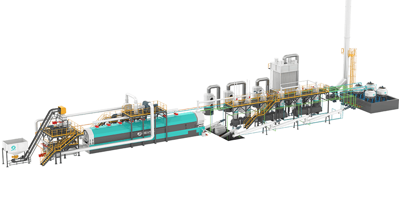 廢舊輪胎、塑料通過熱解產出燃料油、炭黑和廢鋼絲等,提供3-35噸/天處理范圍內的多種規(guī)格設備,有撬裝式、間歇式、全連續煉油設備等多種工藝可供選擇。